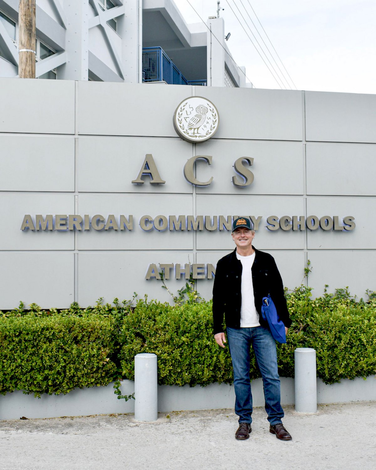 Guided by Dr. Peggy Pelonis, President of ACS Athens, Kinnear toured the school grounds and revisited the familiar pathways of his student years.