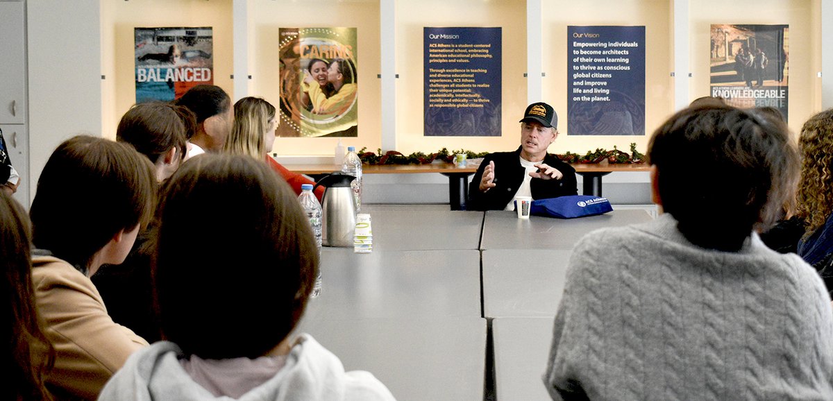 Kinnear’s visit was a meaningful moment for ACS Athens—an inspiring encounter that connected past and present, celebrated the achievements of one of our distinguished alumni, and affirmed the lifelong ties that begin right here on our campus.