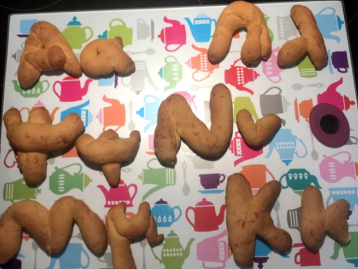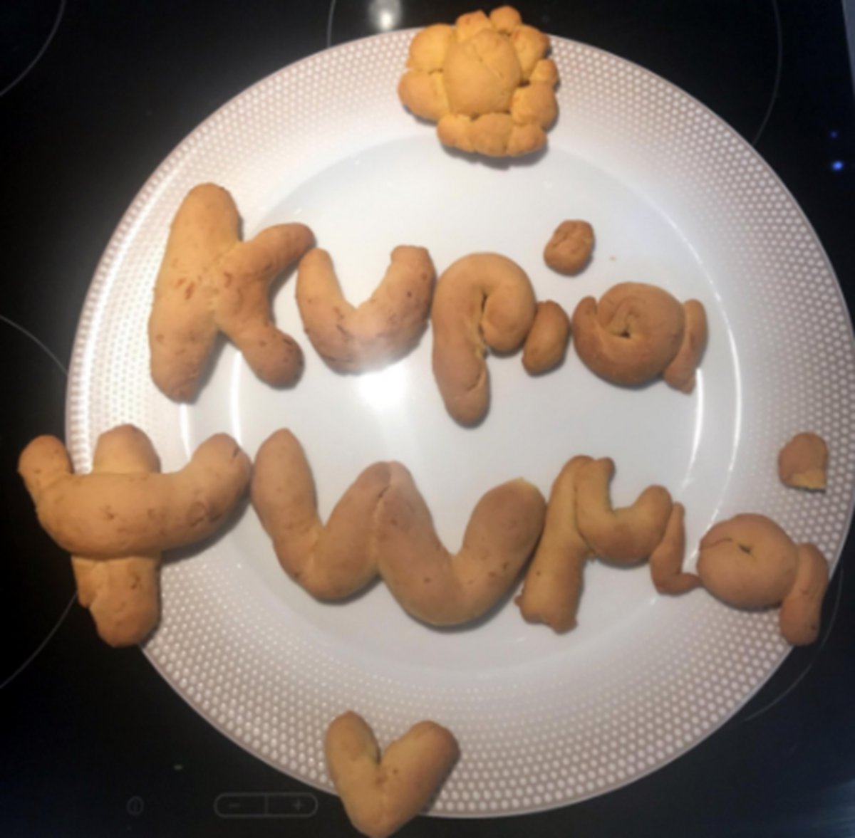 Early the next morning, I received a baking tray with my name written with carrot dough!!! My last name must have been delicious !!!